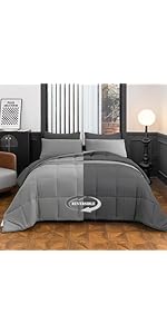 Queen Size Comforter Set - 8-Piece Gray Luxury Bedding with Reversible Microfiber Lightweight Comforter, Bed Skirt, Flat Sheets, Pillowcases & Pillow Shams